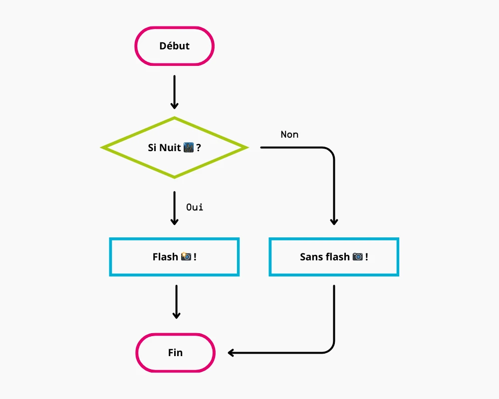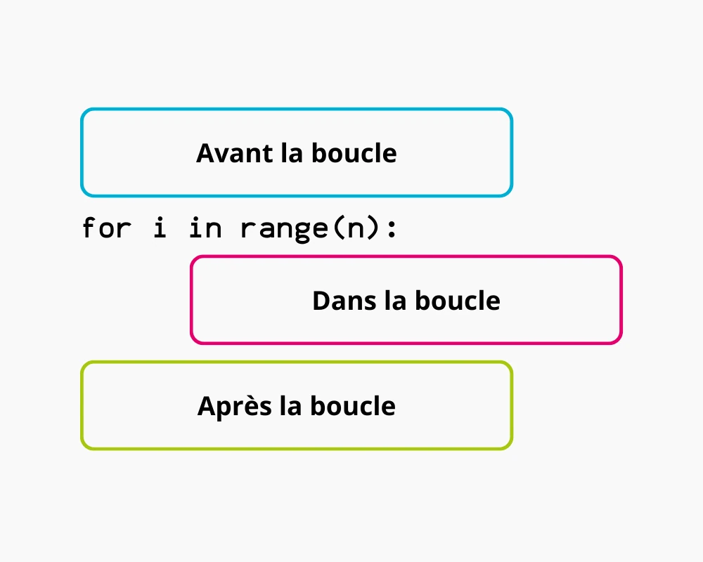 Voici un petit schéma pour bien différencier les différents blocs de code :