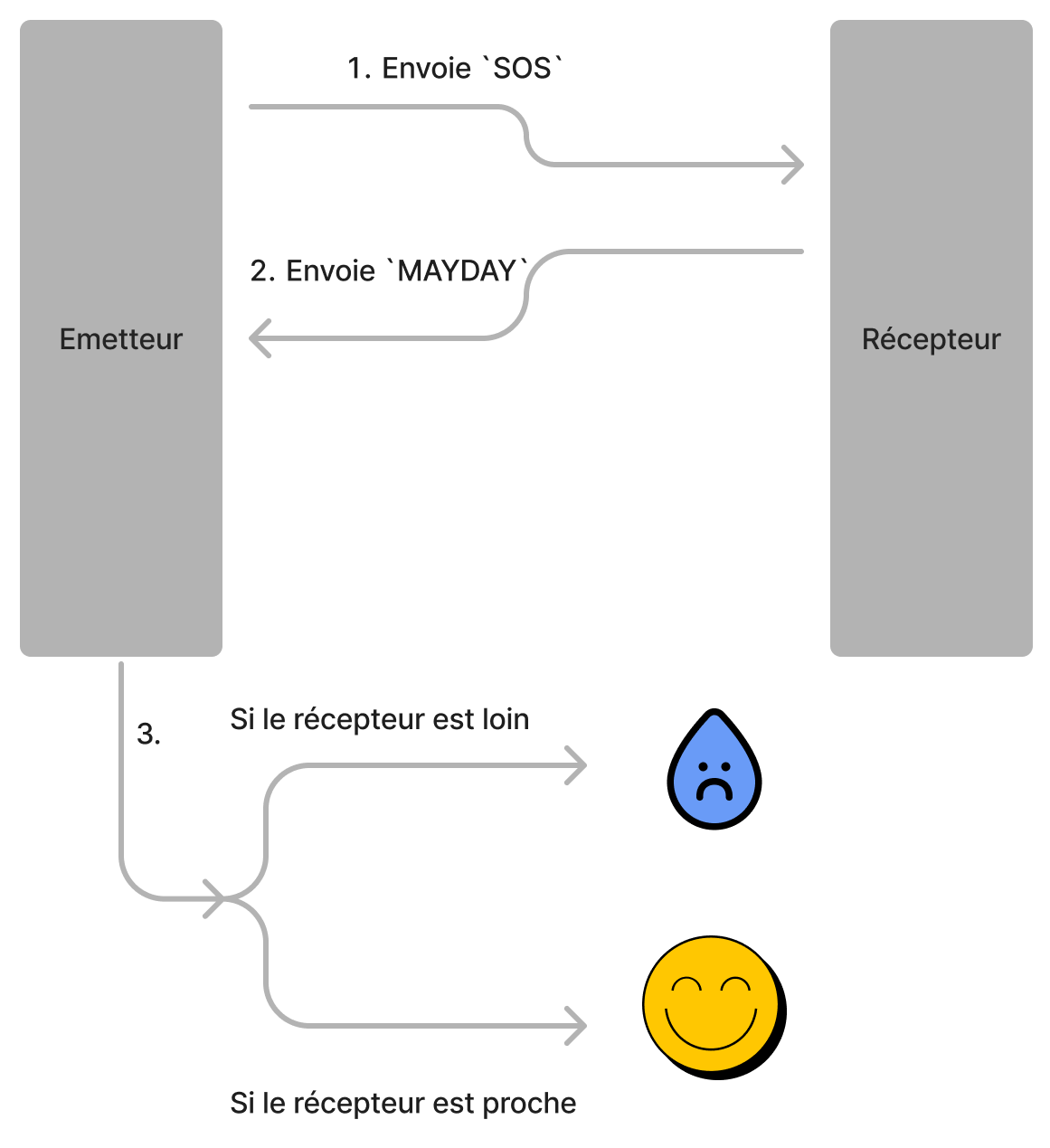 une balise émettrice d’envoyer SOS à toutes les autres balises connectées.
